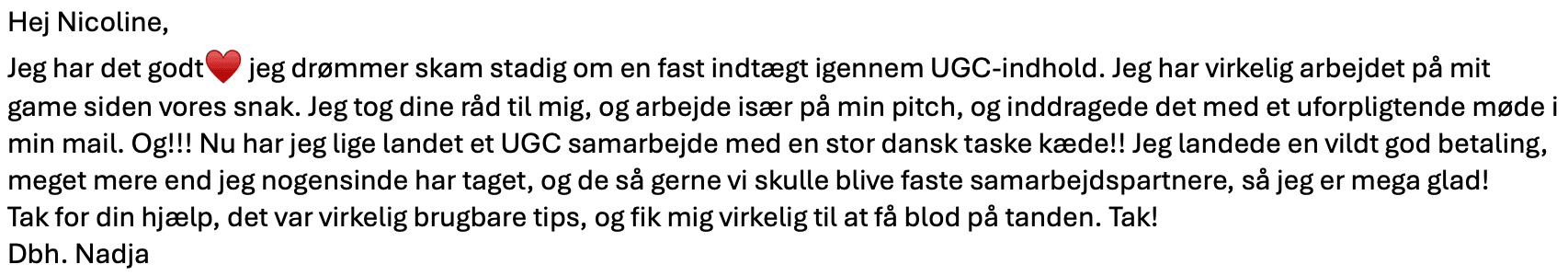 OBS! Denne video henvender sig ikke til nybegyndere, der ikke kender til content creation eller UGC endnu. Er du helt ny, kan jeg i stedet anbefale dig at følge med på min Instagram for at lære mere om at komme i gang.